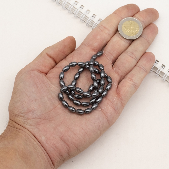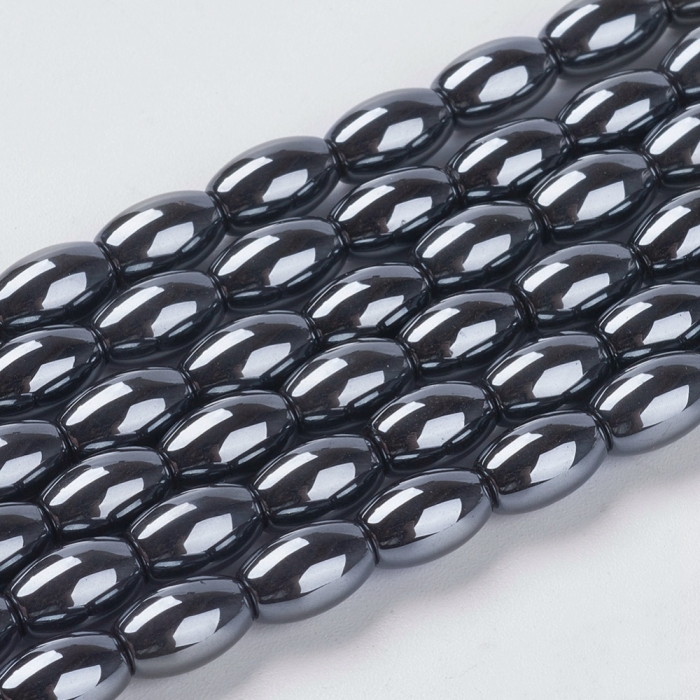 Бусины Синтетический Гематит, Немагнитный, на нитях, Овал, Цвет: Черный, Размер: 8х5мм, Отв. 1мм, около 40шт/34см/нить, (УТ100011256) - ᐈ заказывайте в Москве оптом и в розницу ✅Скидки ✅Акции ✅Распродажи ᐈ доставка по всей России ᐈ Интернет-магазин Мир Бусин