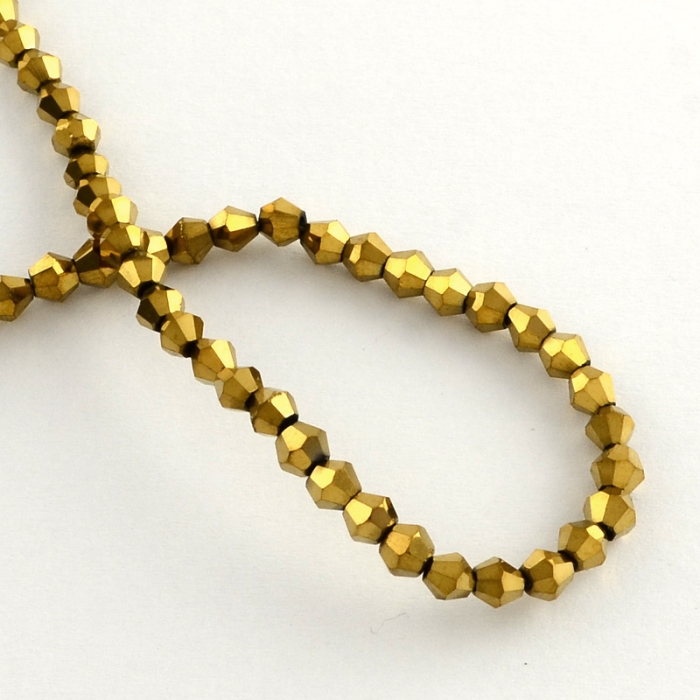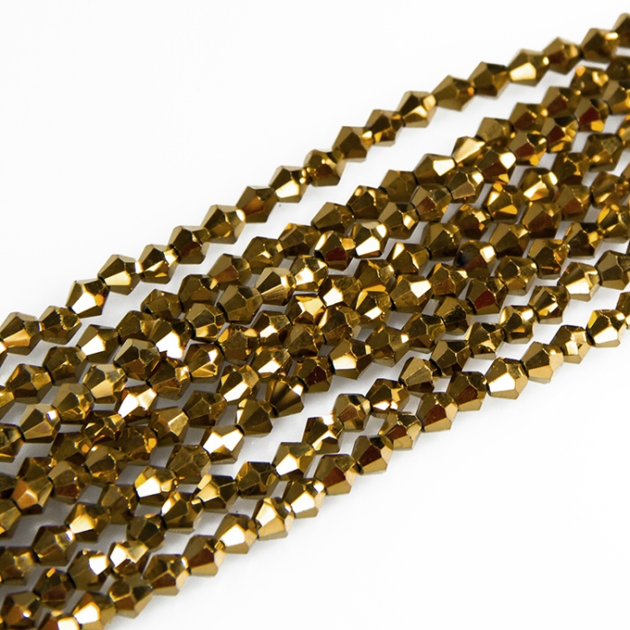 Бусины Гальваника Стекло, Биконус, Цвет: Золотистый, Размер: 4х4.5мм, Отв-тие 1мм, около 80шт/30см/нить, (УТ100013995)