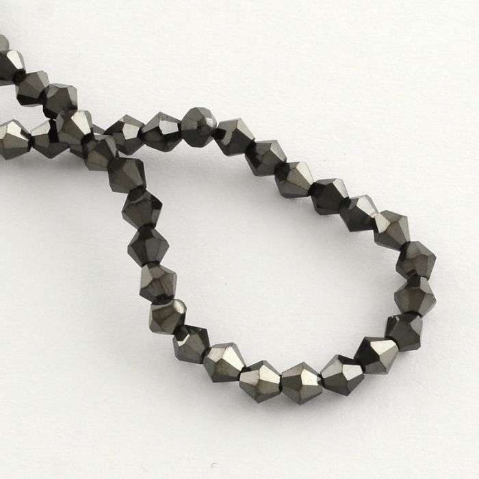 Бусины Гальваника Стекло, Биконус, Черный, 4х4.5мм, Отв-тие 1мм, около 80шт/30см/нить, (УТ100014000)