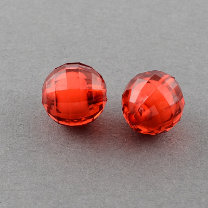 Бусины Акрил Граненые Прозрачные, Бусина в Бусине, Круглые, Цвет: Красный, Диаметр: 10мм, Отверстие 2мм, около 90шт/50г, (УТ100014037)