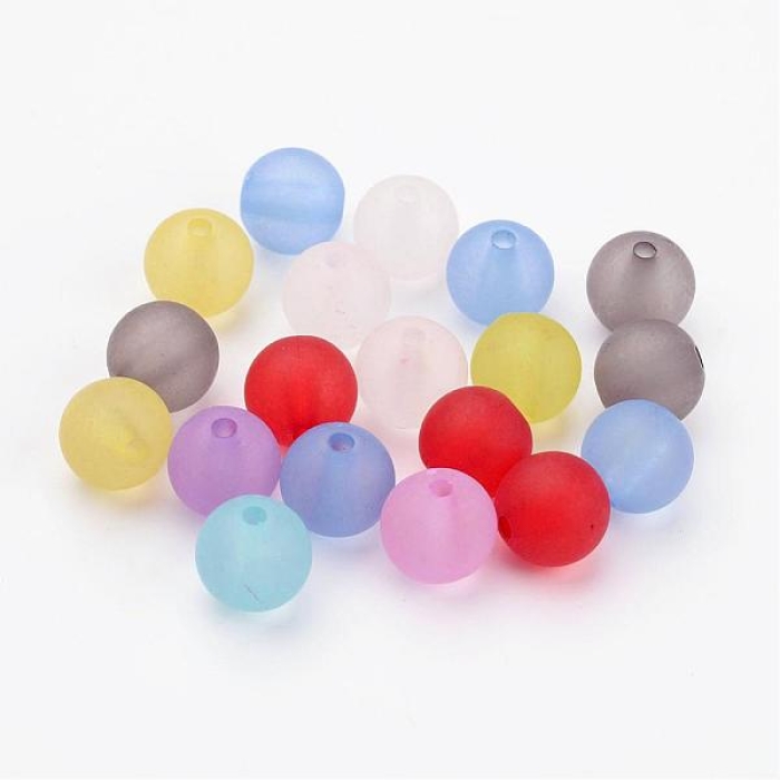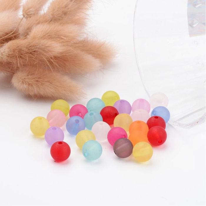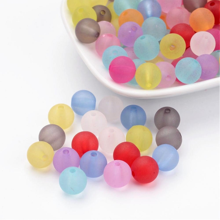 Бусины Акрил Матовые, Прозрачные, Круглые, Морозный стиль, Цвет: Микс, Размер: 10мм, Отверстие 2мм, около 40шт/25г, (УТ100014364)
