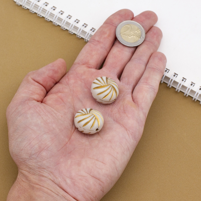 Бусины Акриловые "Париж" Круглые Плоские, с Рисунком Металлик Золото, Цвет: Бежевый, Размер: 23x16мм, Отверстие 2мм, (УТ100014395) - ᐈ заказывайте в Москве оптом и в розницу ✅Скидки ✅Акции ✅Распродажи ᐈ доставка по всей России ᐈ Интернет-магазин Мир Бусин