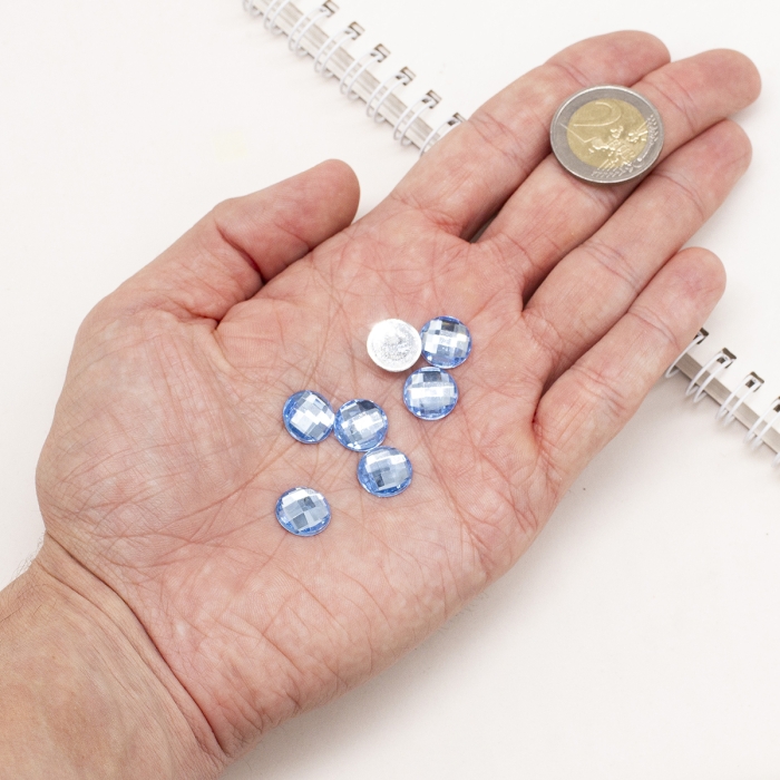 Акриловые Стразы - Кабошоны, Граненые, Плоские Круглые, Цвет: Голубой, Размер: 12х4.5мм, (УТ100014585) - ᐈ заказывайте в Москве оптом и в розницу ✅Скидки ✅Акции ✅Распродажи ᐈ доставка по всей России ᐈ Интернет-магазин Мир Бусин