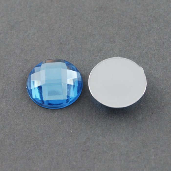 Акриловые Стразы - Кабошоны, Граненые, Плоские Круглые, Цвет: Голубой, Размер: 12х4.5мм, (УТ100014585)
