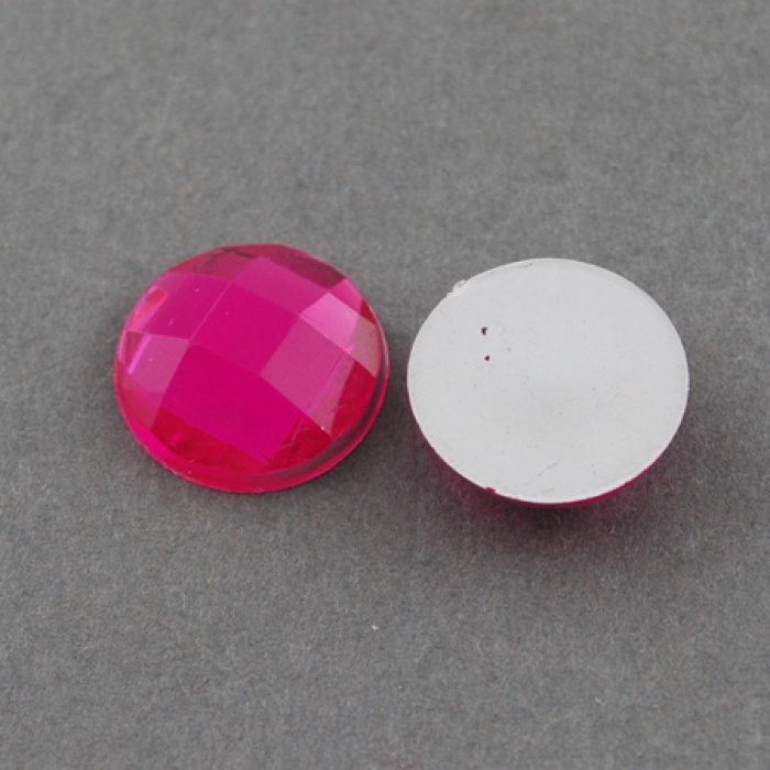 Акриловые Стразы - Кабошоны, Граненые, Плоские Круглые, Цвет: Темно-розовый, Размер: 10x4мм, (УТ100014700)