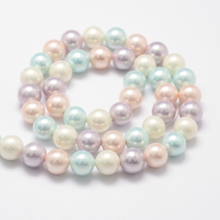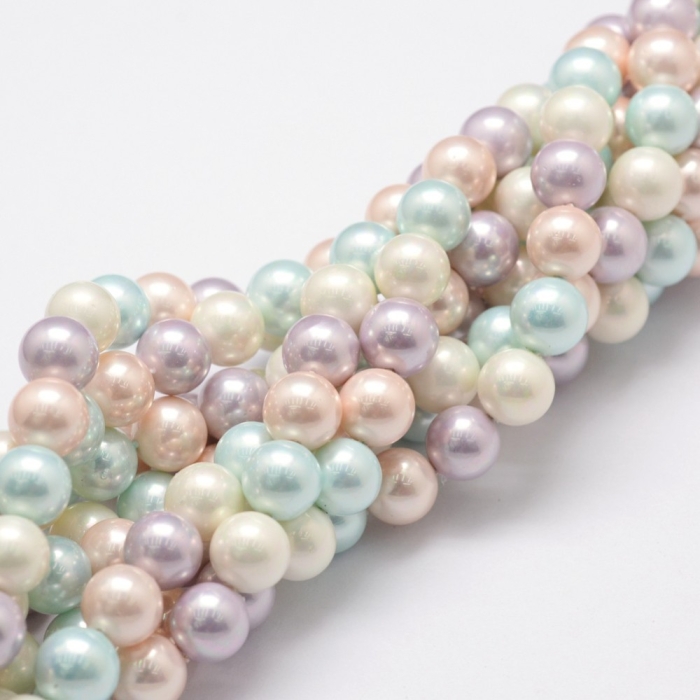 Жемчуг Shell Pearl Бусины Круглый, Класс А, Микс, 8мм, Отверстие 1мм, около 50шт/40см/нить, (УТ100015169)