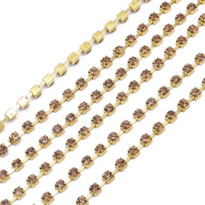 Цепь Латунь со Стразами 2мм, Класс А, Цвет металла: Золото, Цвет Страз: Лайт Топаз, Ширина 2мм, около 360шт/1.1м, (УТ100015219) - ᐈ заказывайте в Москве оптом и в розницу ✅Скидки ✅Акции ✅Распродажи ᐈ доставка по всей России ᐈ Интернет-магазин Мир Бусин