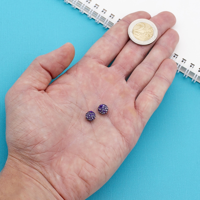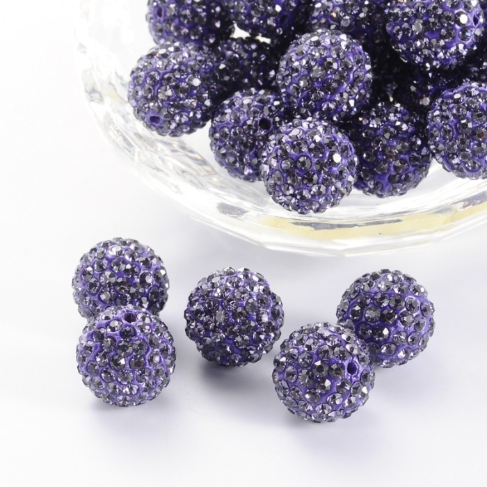 Бусины Шамбала со Стразами, Класс А, из Полимерной Глины, Круглые, Цвет: Фиолетовый, Размер: 8мм, Отверстие 1.5мм, (УТ100015437) - ᐈ заказывайте в Москве оптом и в розницу ✅Скидки ✅Акции ✅Распродажи ᐈ доставка по всей России ᐈ Интернет-магазин Мир Бусин