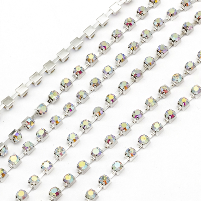 Цепь Латунь со Стразами 2.8мм, Класс А, Цвет металла: Серебро, Цвет Страз: Кристалл АВ, Ширина 2.8мм, около 285шт/1.5м, (УТ100015226) - ᐈ заказывайте в Москве оптом и в розницу ✅Скидки ✅Акции ✅Распродажи ᐈ доставка по всей России ᐈ Интернет-магазин Мир Бусин