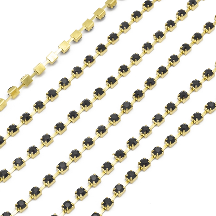 Цепь Латунь со Стразами 2.8мм, Класс А, Цвет металла: Золото, Цвет Страз: Черный, Ширина 2.8мм, около 285шт/1.5м, (УТ100015232) - ᐈ заказывайте в Москве оптом и в розницу ✅Скидки ✅Акции ✅Распродажи ᐈ доставка по всей России ᐈ Интернет-магазин Мир Бусин