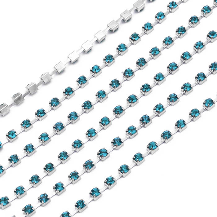 Цепь Латунь со Стразами 2.8мм, Класс А, Цвет металла: Серебро, Цвет Страз: Голубой Циркон, Ширина 2.8мм, около 285шт/1.5м, (УТ100015237) - ᐈ заказывайте в Москве оптом и в розницу ✅Скидки ✅Акции ✅Распродажи ᐈ доставка по всей России ᐈ Интернет-магазин Мир Бусин