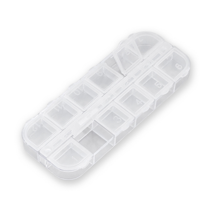 Органайзер-Контейнер для Хранения Бисера, Фурнитуры, Мелких Деталей — 12 Отделений, 13×5×1.5см, (БА000001222) - ᐈ заказывайте в Москве оптом и в розницу ✅Скидки ✅Акции ✅Распродажи ᐈ доставка по всей России ᐈ Интернет-магазин Мир Бусин