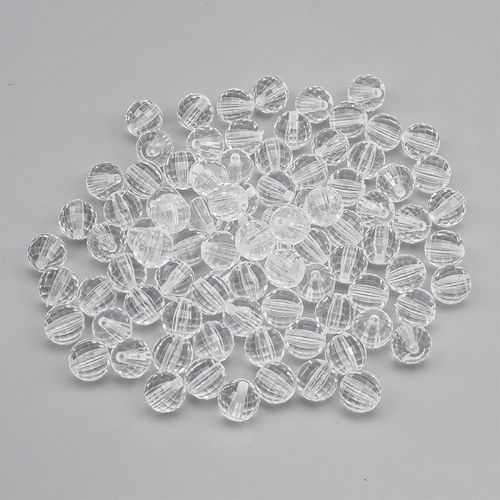 Бусины Акриловые Прозрачные, Граненые, Круглые, Цвет: Бесцветный, Диаметр: 10мм, Отверстие 2мм, около 80шт/50г, (БА000001811)