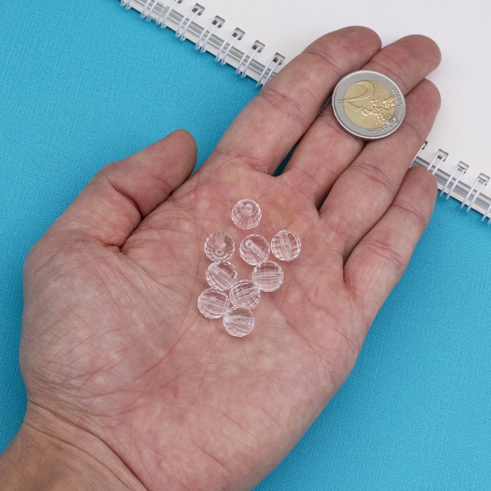 Эти акриловые прозрачные граненые бусины круглой формы создают впечатляющий световой эффект благодаря своей огранке. Бесцветные бусины подходят для создания различных украшений, добавляя изделиям яркость и блеск.