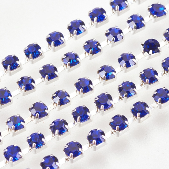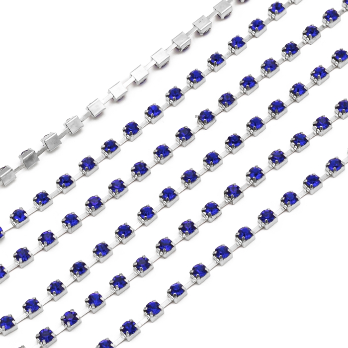 Цепь со Стразами, Латунь, Класс А, Цвет металла: Серебро, Цвет Страз: Сапфир, Ширина 2мм, около 360шт/1.1м, (УТ100017382) - ᐈ заказывайте в Москве оптом и в розницу ✅Скидки ✅Акции ✅Распродажи ᐈ доставка по всей России ᐈ Интернет-магазин Мир Бусин