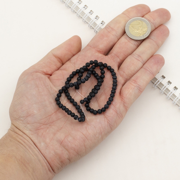 Бусины Синтетический Шунгит Морозный Стиль, Круглые, Цвет: Черный, Диаметр: 4-5мм, Отв. 1мм, около 90шт/38см/нить, (УТ100017974) - ᐈ заказывайте в Москве оптом и в розницу ✅Скидки ✅Акции ✅Распродажи ᐈ доставка по всей России ᐈ Интернет-магазин Мир Бусин
