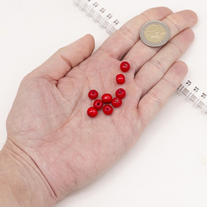 Бусины Дерево Окрашенные, Круглые, Цвет: Красный, Размер: 8x7мм, Отв-тие: 3мм, ок. 280шт/50г, (УТ100017989) - ᐈ заказывайте в Москве оптом и в розницу ✅Скидки ✅Акции ✅Распродажи ᐈ доставка по всей России ᐈ Интернет-магазин Мир Бусин