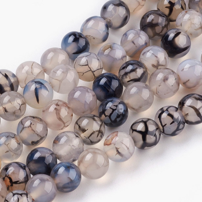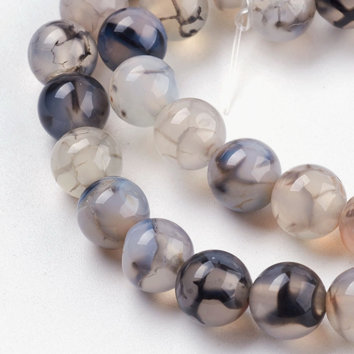 Бусины из Натурального Агата Вены Дракона Окрашенные, Круглые, на Нитях