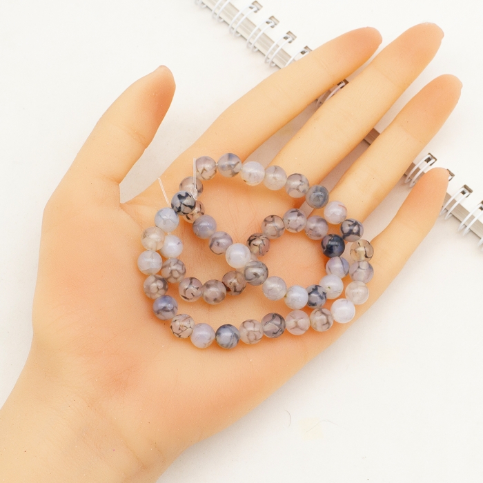 Бусины Натуральный Агат Вены Дракона Круглые, Серые, 8мм, Отверстие 1.5мм, около 48шт/36см/нить, (УТ100019239) - ᐈ заказывайте в Москве оптом и в розницу ✅Скидки ✅Акции ✅Распродажи ᐈ доставка по всей России ᐈ Интернет-магазин Мир Бусин