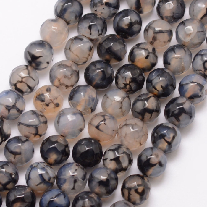 Бусины Натуральный Агат Вены Дракона Класс А, Граненые, Окрашенные, Круглые.