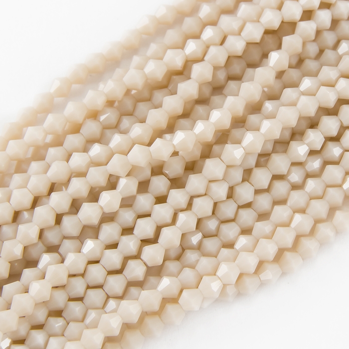 Бусины Стеклянные Имитация Нефрита, Граненые, Биконус, Бежевый, 4.5х4мм, Отверстие: 1мм, около 82шт/30см/нить, (УТ100019376) - ᐈ заказывайте в Москве оптом и в розницу ✅Скидки ✅Акции ✅Распродажи ᐈ доставка по всей России ᐈ Интернет-магазин Мир Бусин
