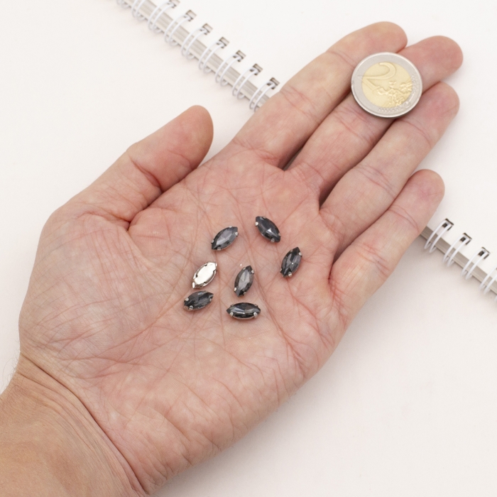 Пришивные Стразы, Стекло Горный Хрусталь, Основа Латунь, Конский глаз, Цвет: Серый, Размер: 12х6х4.5мм, Отверстие 0.8-1мм, (УТ100019702) - ᐈ заказывайте в Москве оптом и в розницу ✅Скидки ✅Акции ✅Распродажи ᐈ доставка по всей России ᐈ Интернет-магазин Мир Бусин