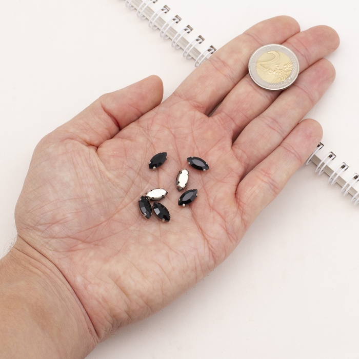 Пришивные Стразы, Стекло Горный Хрусталь, Основа Латунь, Конский глаз, Цвет: Черный, Размер: 12х6х4.5мм, Отверстие 0.8-1мм, (УТ100019718) - ᐈ заказывайте в Москве оптом и в розницу ✅Скидки ✅Акции ✅Распродажи ᐈ доставка по всей России ᐈ Интернет-магазин Мир Бусин
