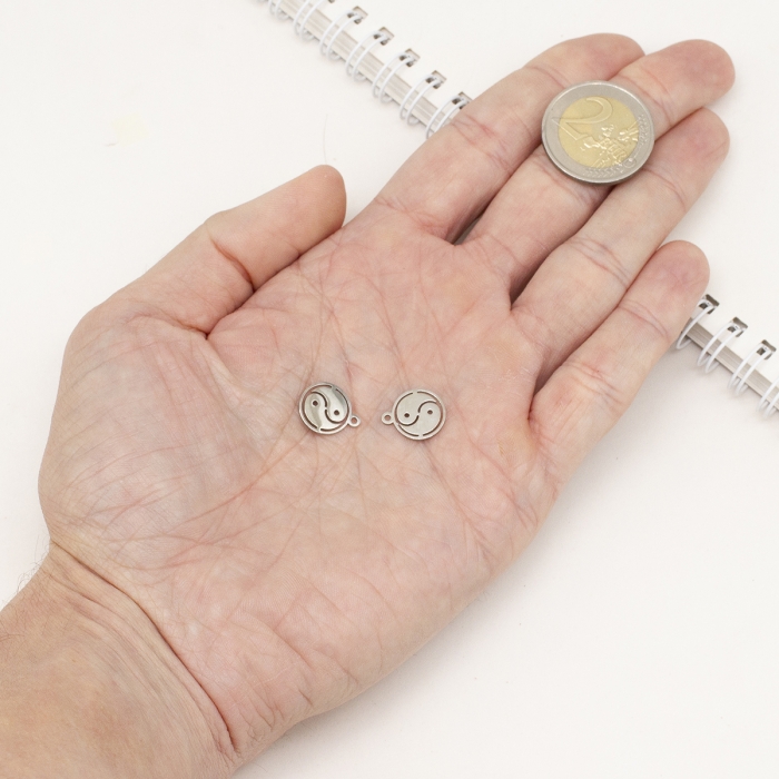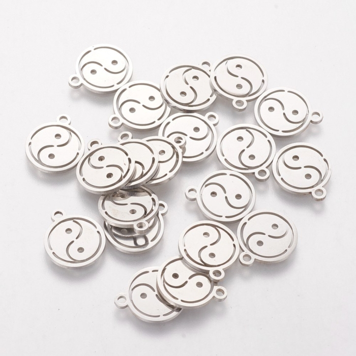 Кулон в форме Инь-Янь из нержавеющей стали представляет собой стильное и символичное украшение для рукоделия и бижутерии. Его эстетичный дизайн, выполненный из прочной нержавеющей стали, придает уникальность изделию. Символ Инь-Янь, представляющий взаимодействие противоположных, но взаимосвязанных сил, придает глубину и особое значение вашим творениям.