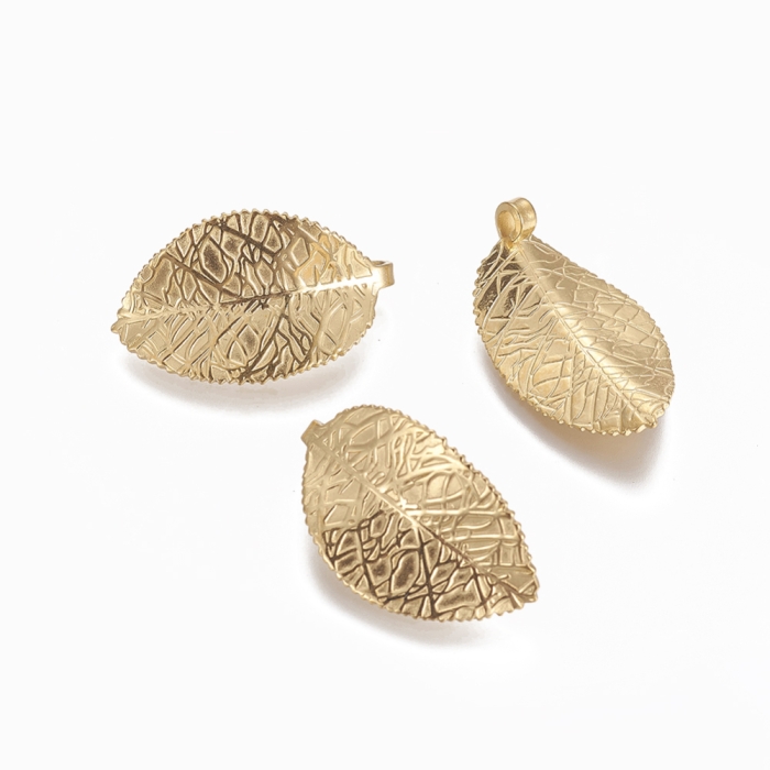 Кулон лист из нержавеющей стали в цвете золото,