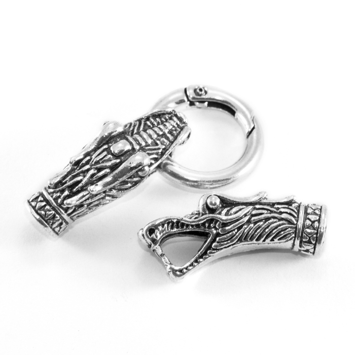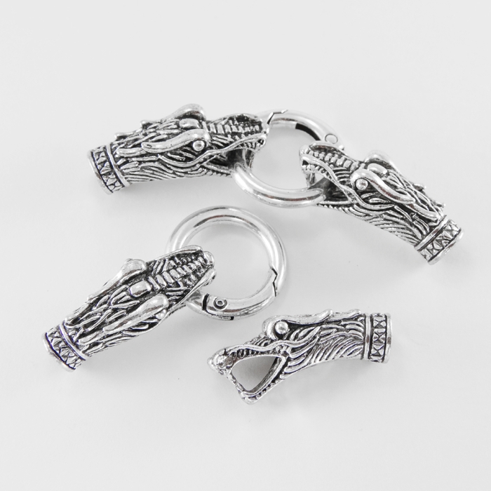 Застёжка с пружинным кольцом и декоративными концевиками в виде головы дракона — это надёжное и стильное решение для создания уникальных украшений, особенно браслетов. Пружинное кольцо обеспечивает удобное и безопасное крепление, а концевики фиксируются на изделии с помощью клея. Форма драконьей головы добавляет яркий акцент, вдохновлённый фэнтези и этническими мотивами. Эти элементы не только выполняют практическую функцию, но и становятся выразительной деталью дизайна. Идеально подходят для создания мужских браслетов и аксессуаров с характером — подчёркивают индивидуальность и добавляют изделию мощный декоративный эффект.