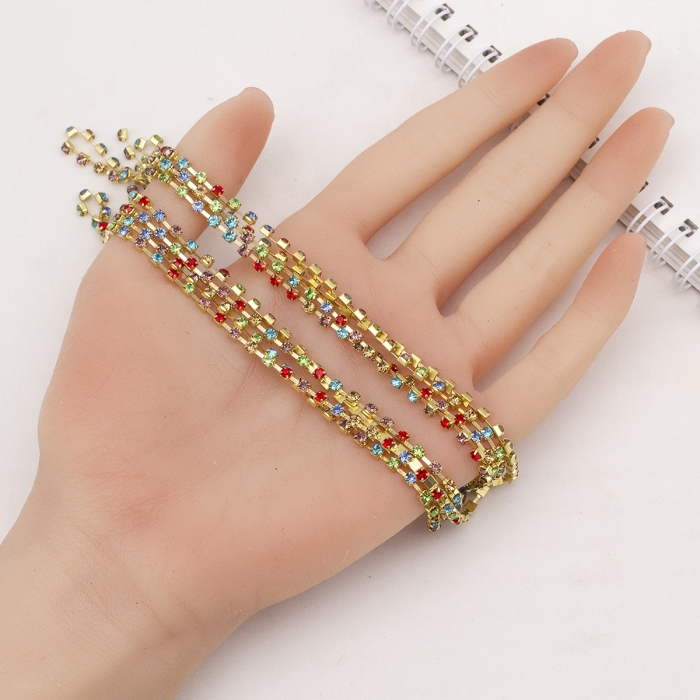 Цепь Латунь со Стразами 2.8мм, Класс А, Золото, Цвет Страз: Разноцветный, Ширина 2.8мм, около 285шт/1.5м, (УТ100020905) - ᐈ заказывайте в Москве оптом и в розницу ✅Скидки ✅Акции ✅Распродажи ᐈ доставка по всей России ᐈ Интернет-магазин Мир Бусин