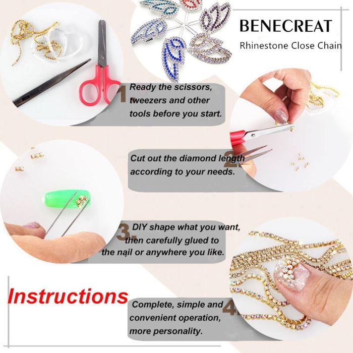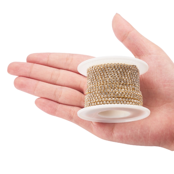Цепь со стразами идеально подходит для изготовления ожерелий, браслетов, серёг и декорирования аксессуаров, таких как сумки, ремни или обувь. Её можно использовать как самостоятельный элемент украшения или комбинировать с другими материалами, например, бусинами, натуральными камнями или металлическими деталями.