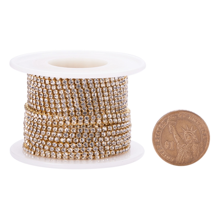 Цепь со Стразами Латунь без Покрытия, Кристалл, 2мм, 9м/катушка, (УТ100020928)