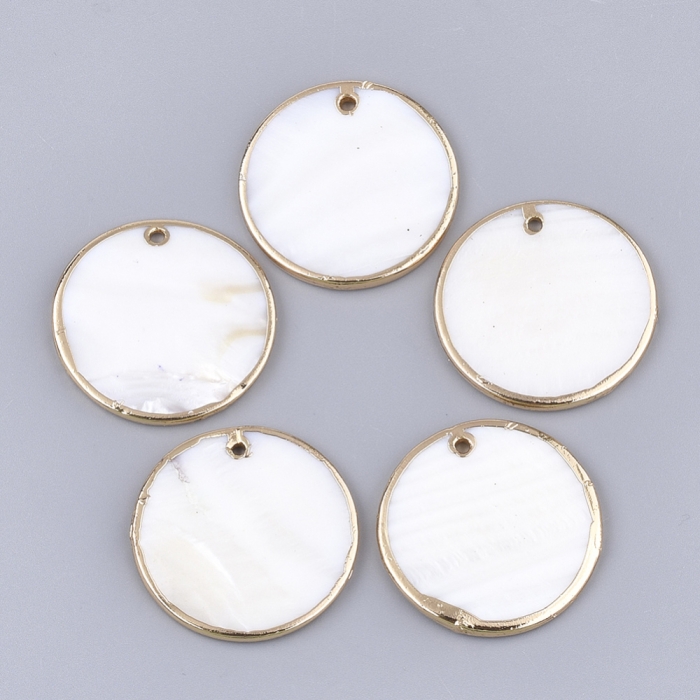 Кулон Натуральный Речной Перламутр, Фурнитура латунь, Цвет: Золото, Круглый Плоский, Белый, Размер: 30.5x2-2.5мм, Ответстие 1.8мм, (УТ100021814) - ᐈ заказывайте в Москве оптом и в розницу ✅Скидки ✅Акции ✅Распродажи ᐈ доставка по всей России ᐈ Интернет-магазин Мир Бусин