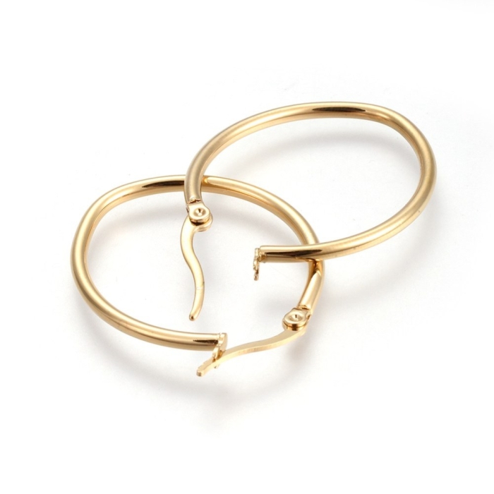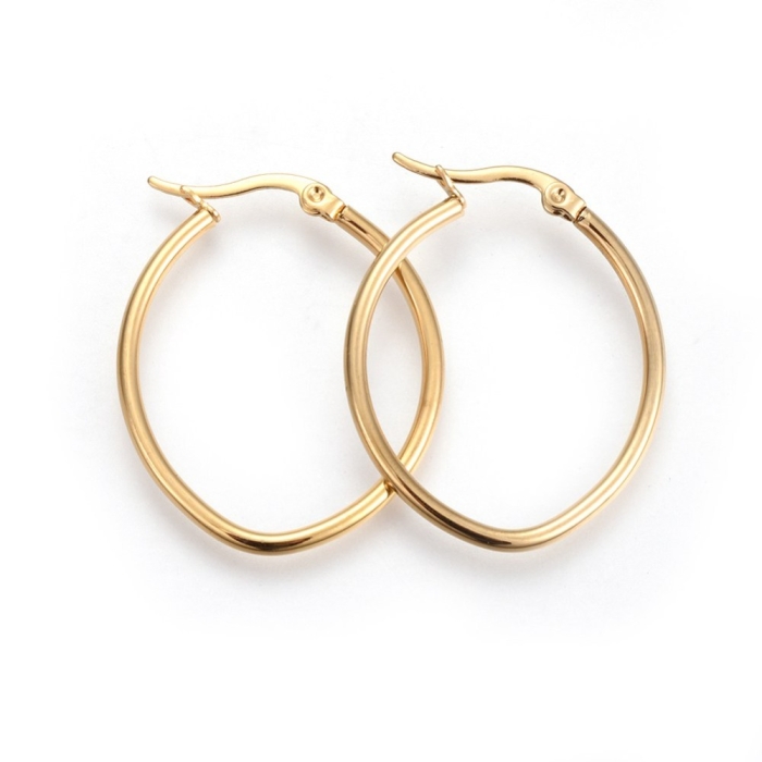 Серьги-кольца из 201 Нержавеющей Стали, Цвет: Золото, Овал, Размер : Длина 34мм ,Ширина 28мм, Толщина 2мм ,Штифт: 1мм. гипоаллергенные серьги- из нержавеющей стали, без никеля, которые нежны к коже, эти серьги идеально подходят для чувствительных ушей.