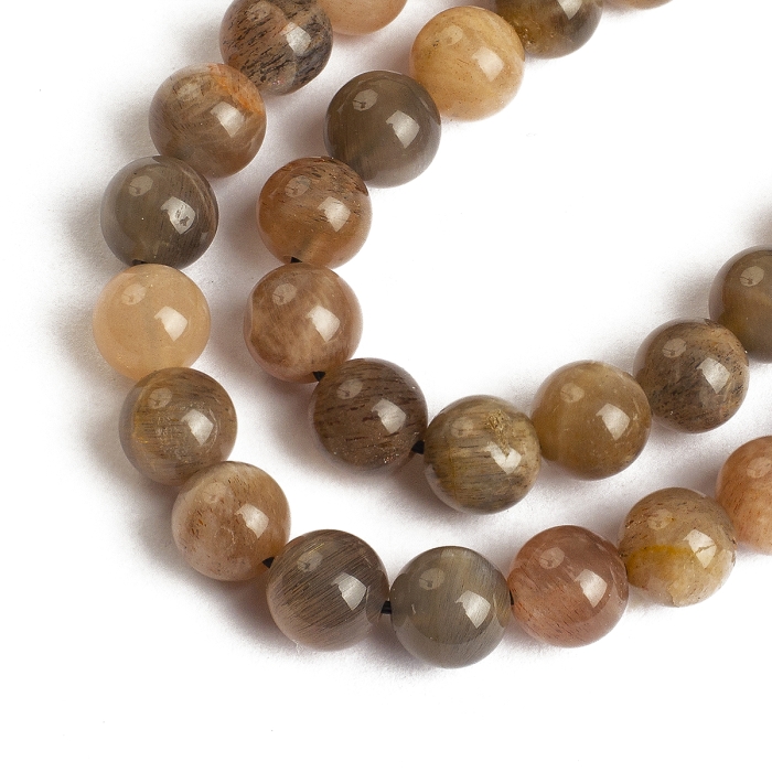 Бусины из Натурального Солнечного Камня Круглые, Неокрашенные, на Нитях
