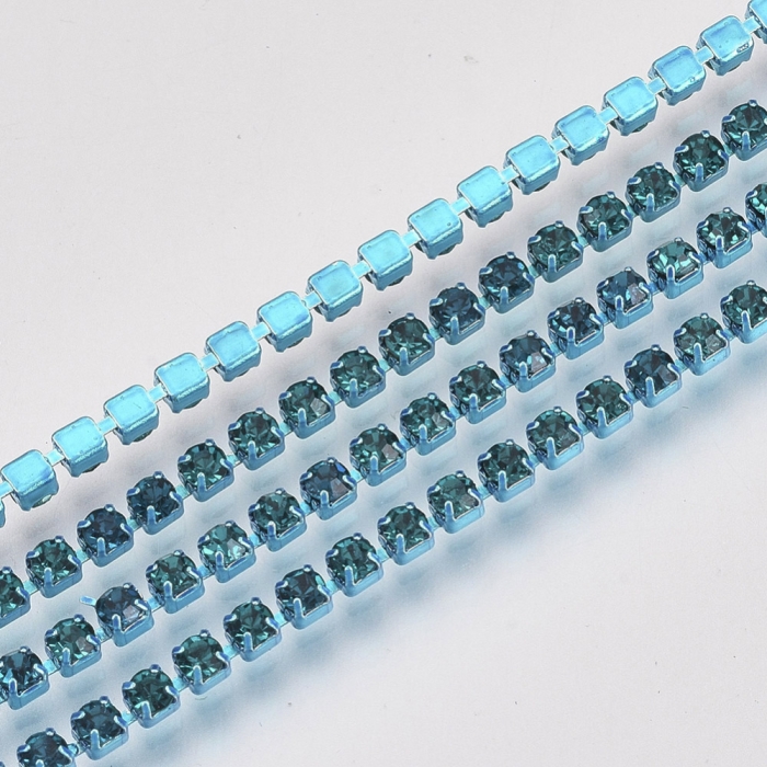 Цепь Латунь со Стразами, Катушка 9м, Цвет Страз: Голубой Фианит, Размер: Ширина 2мм, (УТ100022990) - ᐈ заказывайте в Москве оптом и в розницу ✅Скидки ✅Акции ✅Распродажи ᐈ доставка по всей России ᐈ Интернет-магазин Мир Бусин