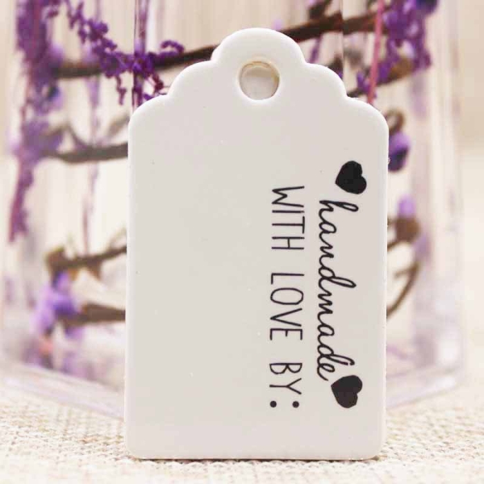 Бирки Подарочные Прямоугольные, с надписью Handmade with Love BY.