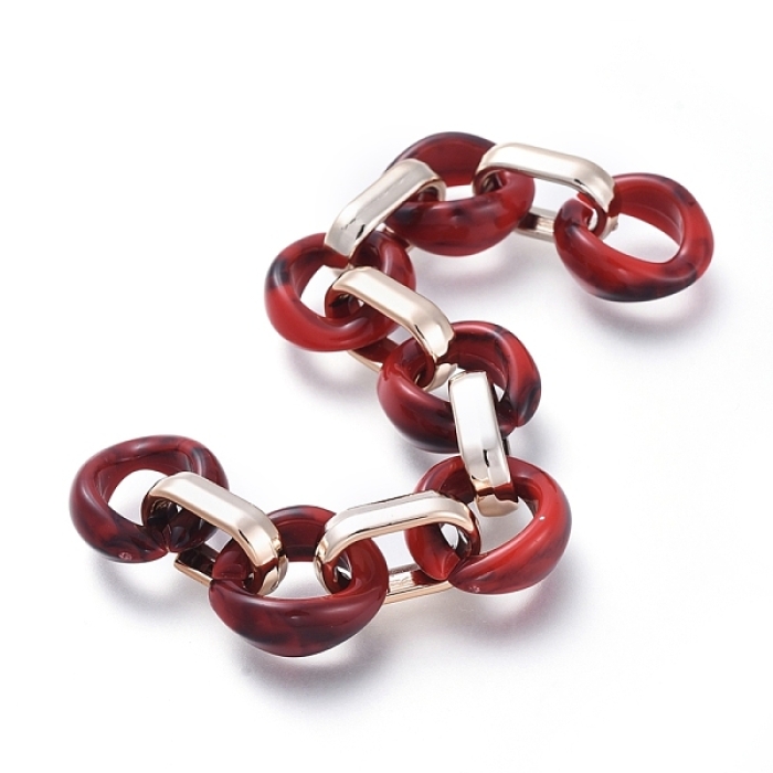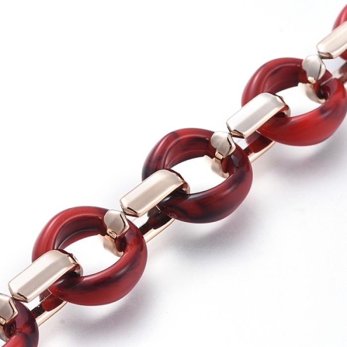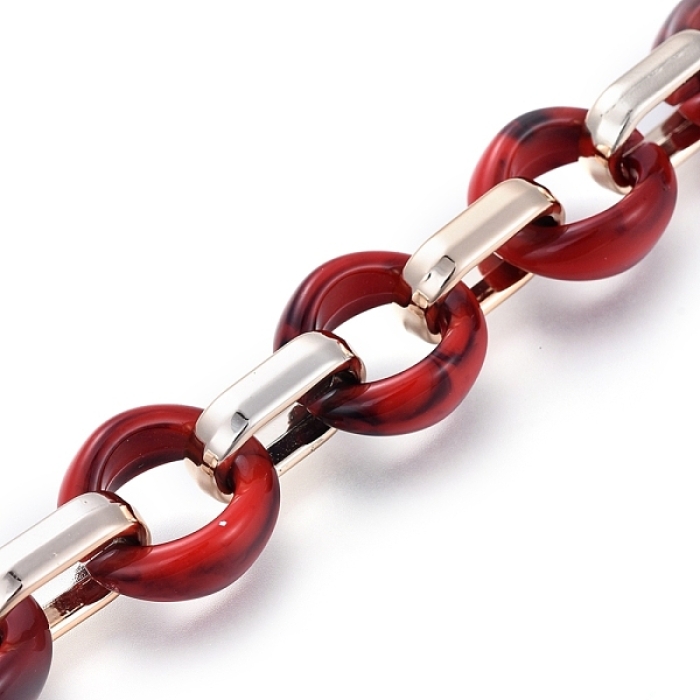Цепь Акриловая Ручной Работы, Прозрачная, Овальная плоская, Цвет: Красный, Звено: 18.5x11.5x4.5мм, 1м/нить, (УТ100023717)