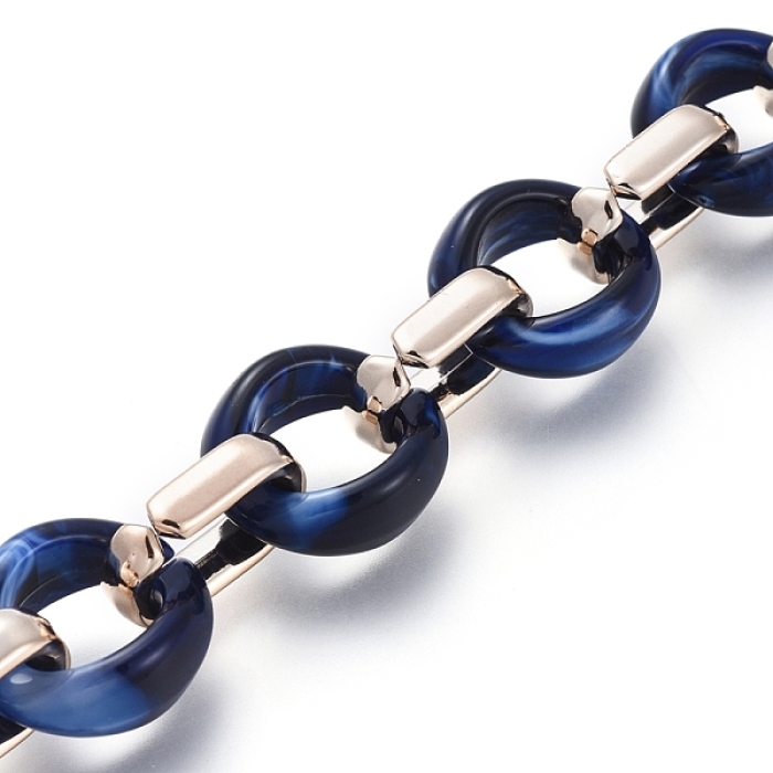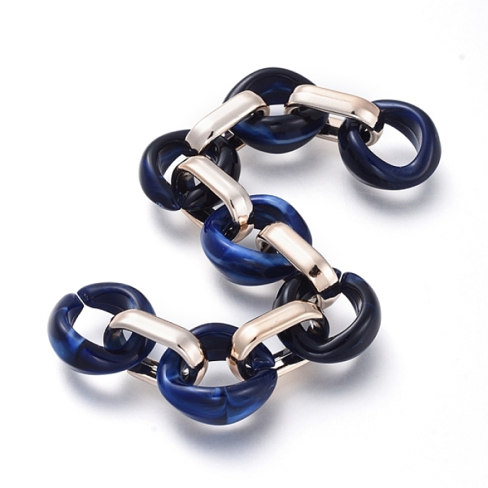 Цепь Акриловая Ручной Работы, Прозрачная, Овальная плоская, Цвет: Синий, Звено: 18.5x11.5x4.5мм, 1м/нить, (УТ100023724)