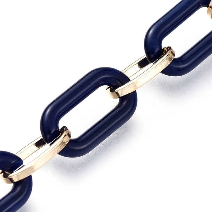 Цепь Акриловая Ручной Работы, Имитация Лазурита, Овальная, с Алюминиевыми Звеньями, Синий, Звено: 20.5x10.5x3мм и 15х8х1.5мм, 1м/нить (УТ100023734)