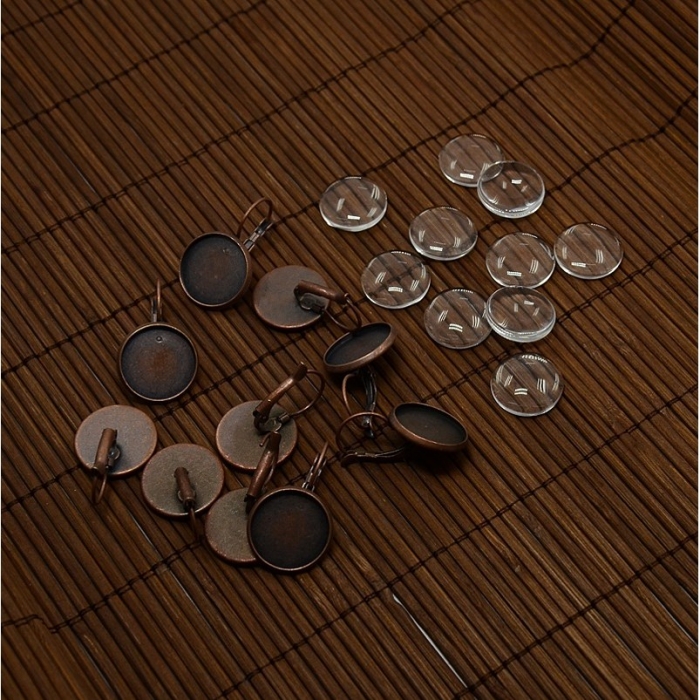 Набор включает латунные основы-швензы (сеттинги) для создания серег и стеклянные кабошоны. Латунная фурнитура прочная, легкая и удобная для работы, а стеклянные кабошоны обеспечивают выразительный блеск и глубину изображения. Идеальная заготовка для авторских украшений.