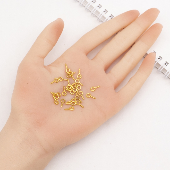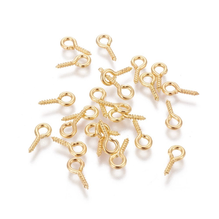 Железные винтовые штифты с петлей — практичные крепежные элементы, используемые в создании украшений. Винтовая резьба на штифте позволяет надежно закрепить его в бусине с полуотверстием, предотвращая выскальзывание. Для более надежной фиксации используйте капельку клея, что обеспечит дополнительную прочность.