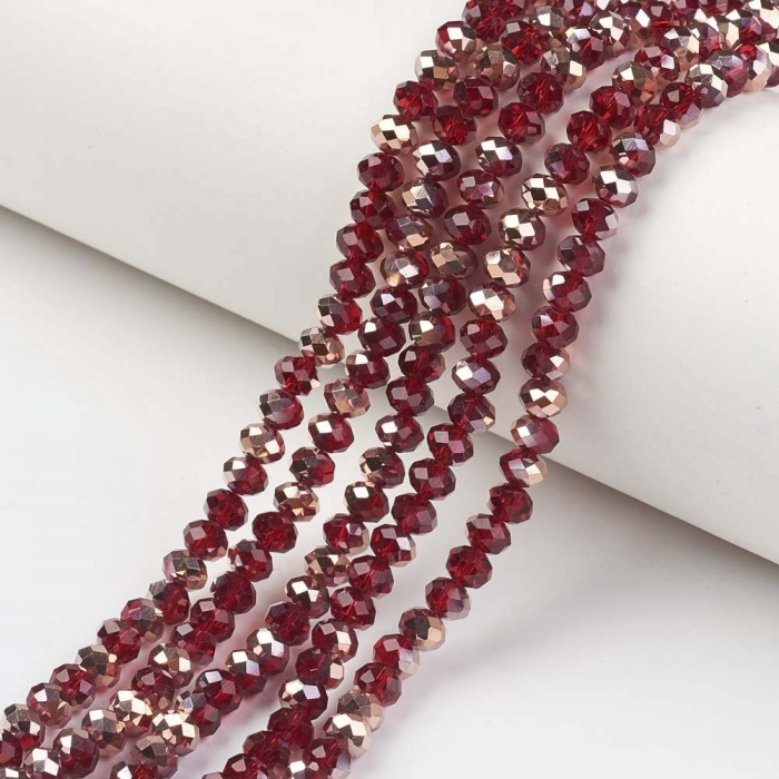 Бусины Гальваническое Стекло, Граненые, Медное Полупокрытие, Рондель, Темно-Красный, 4х3мм, Отв. 0.4мм, ок. 120-123шт/40-43см/нить (УТ100025455)