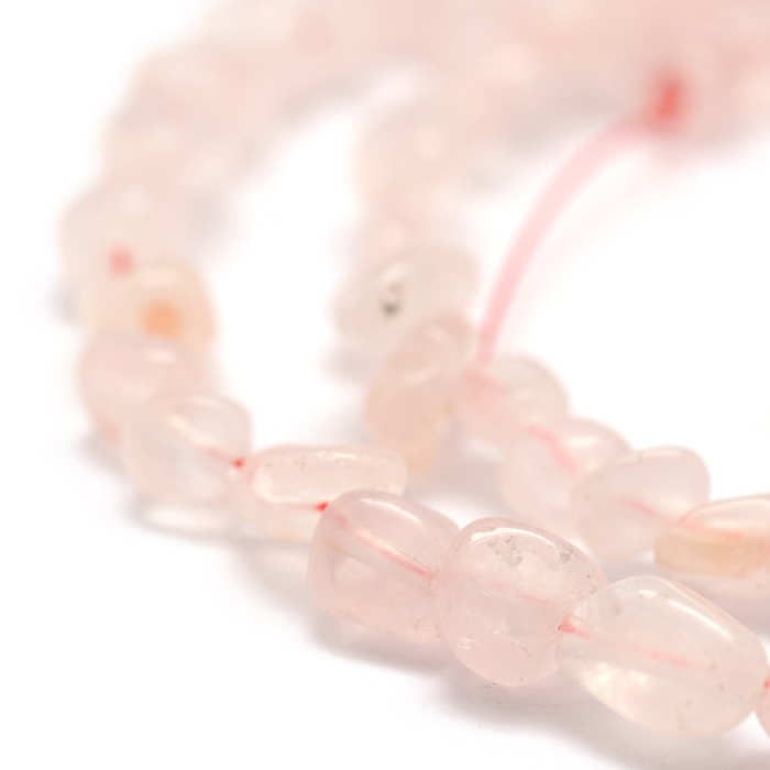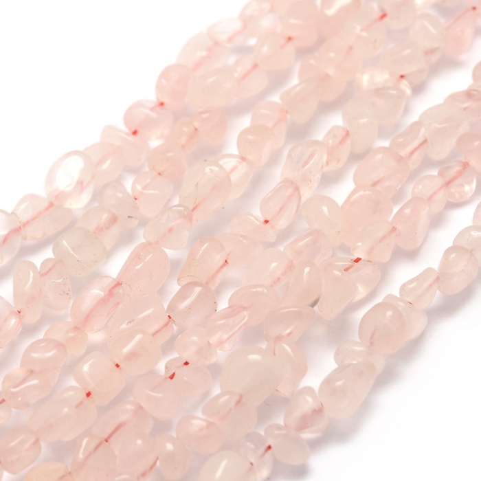Бусины из натурального розового кварца в форме самородков. Камень сохраняет свой природный розовый цвет, который известен своей мягкостью и нежностью. Благодаря естественной форме самородков, бусины имеют уникальный и неповторимый вид, который придаёт украшениям природную красоту и аутентичность. Розовый кварц — это символ любви, гармонии и внутреннего мира. Он помогает открыть сердце для новых чувств, приносит спокойствие и способствует эмоциональному исцелению. Этот камень также помогает справляться с тревогами и способствует личностному росту.
