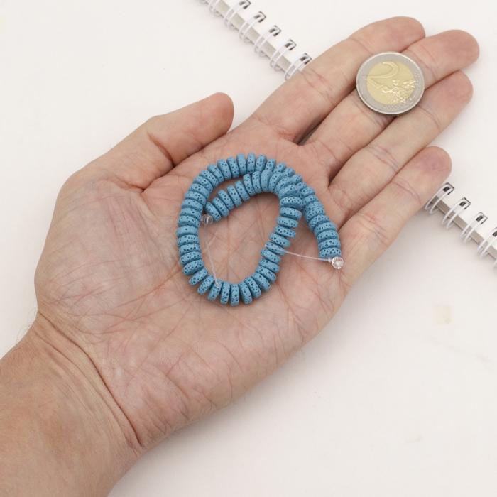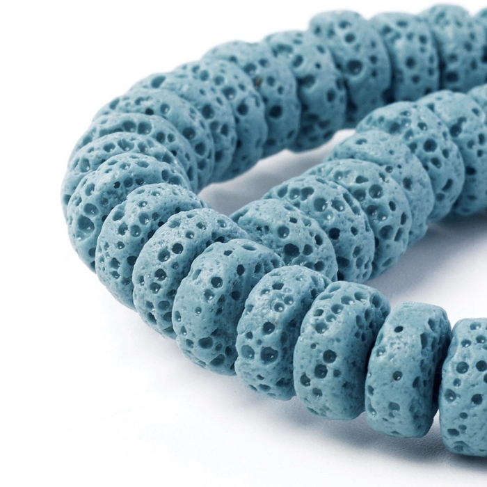Бусины Натуральная Лава, На нитях, Круглые Плоские, Размер: 8~8.5х3~4мм, Отверстие: 2мм, Цвет: Голубой, около 58шт/19см/нить, (УТ100026408) - ᐈ заказывайте в Москве оптом и в розницу ✅Скидки ✅Акции ✅Распродажи ᐈ доставка по всей России ᐈ Интернет-магазин Мир Бусин