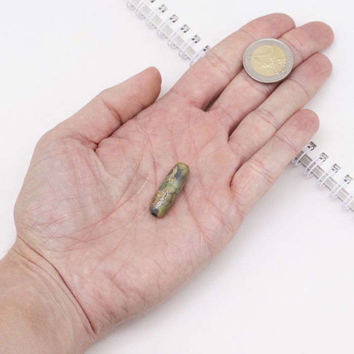 Бусины Дзи Руи из натурального тибетского агата — сакральный тибетский амулет, символ исполнения желаний и духовной гармонии. Название "Руи" с китайского переводится как «по вашему желанию», отражая суть этой бусины — помощь в реализации намерений и привлечении благоприятных обстоятельств. Окрашивание и термообработка камней — процедуры, направленные на улучшение цвета и внешнего вида. Окрашивание придаёт более насыщенные оттенки, а термообработка усиливает природный цвет, сохраняя текстуру и блеск натурального минерала.