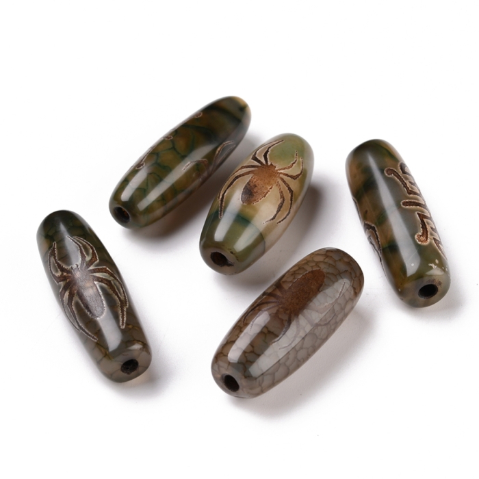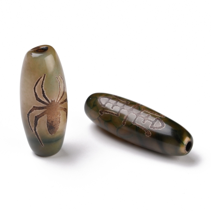 Бусины Дзи Долголетие и Паук из Натурального Тибетского Агата Овальные, Окрашенные и Термообработанные