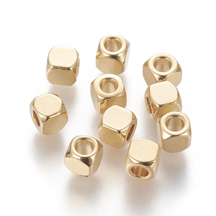 Бусины-Разделители Нержавеющая Сталь, Кубики, Золото, 4х4x4мм, Отверстие 2мм, (УТ100026647) - ᐈ заказывайте в Москве оптом и в розницу ✅Скидки ✅Акции ✅Распродажи ᐈ доставка по всей России ᐈ Интернет-магазин Мир Бусин