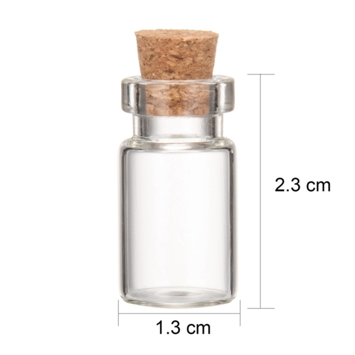 Стеклянная Бутылочка для Бисера и Бусин с Пробкой, 13х23мм, Обьем 2.5мл, (УТ100026813)
